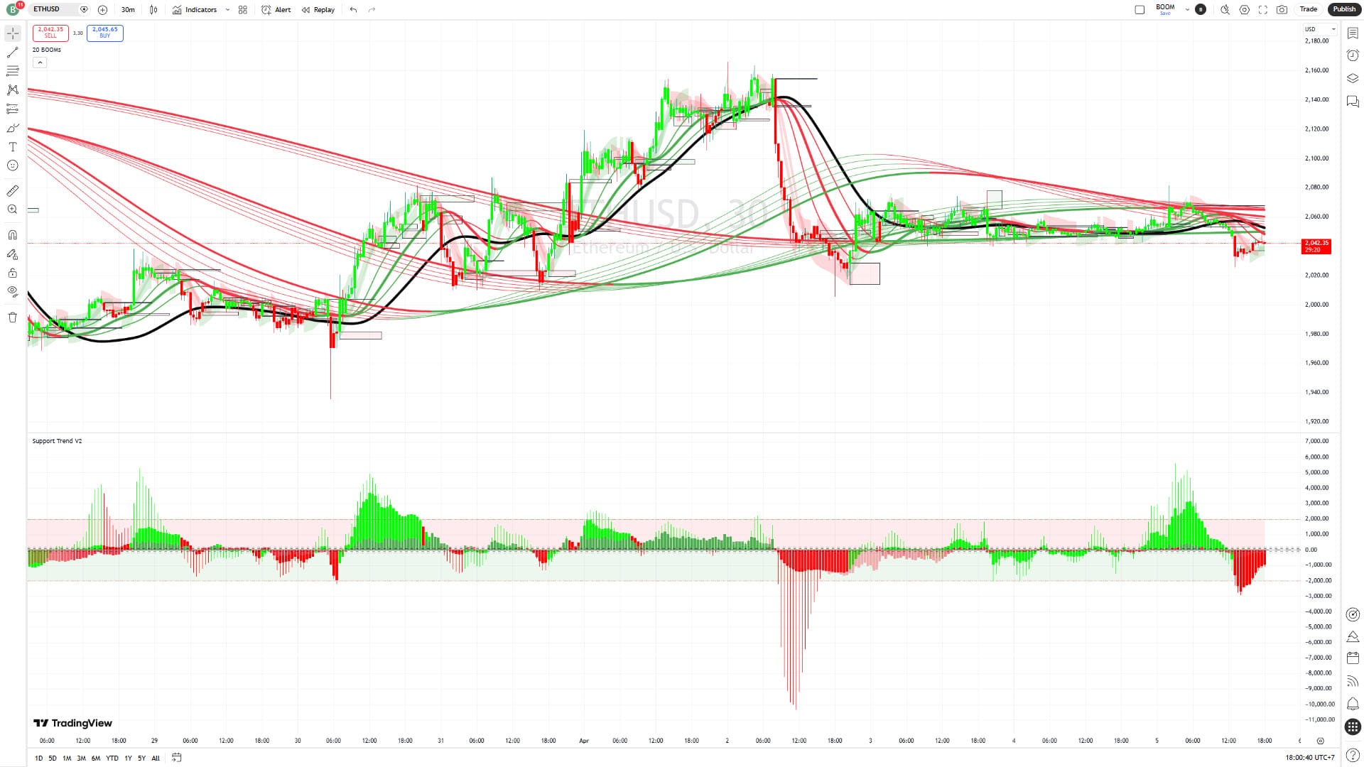 - Support V2 เกิน ±400 ให้หยุดทันที — ไม่ว่า BOOM จะบอกอะไร อย่าไล่ราคาเมื่อ Momentum แรงเกินไปแล้ว