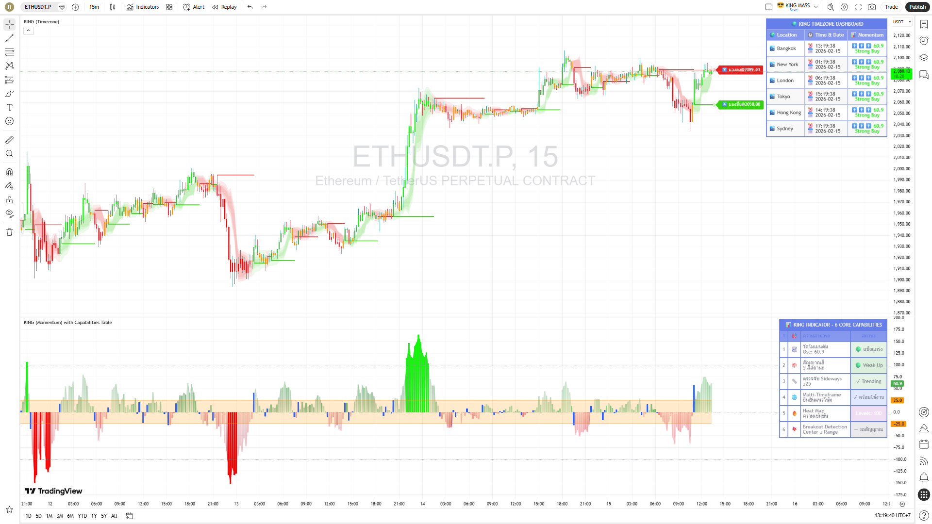 จุดที่ทำให้แตกต่างจริงๆ คือการที่ Timezone Dashboard และ Momentum Oscillator ใช้แกนการวิเคราะห์ชุดเดียวกัน ทำให้ค่าที่เห็นในตารางสอดคล้องกับสัญญาณบนกราฟเสมอ ผู้ใช้จึงไม่ต้องตีความข้อมูลจากสองแหล่งที่ขัดแย้งกัน
